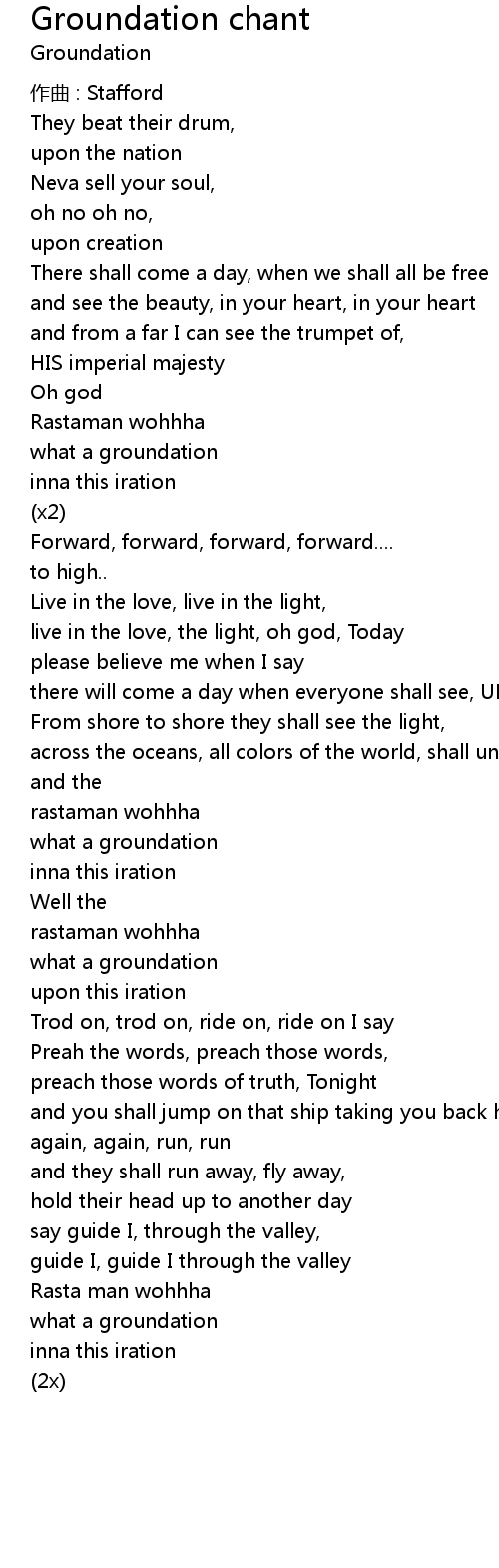 | 歌曲 | Groundation chant |
