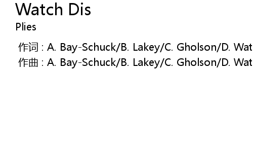 | [00:00.000] | 作词 : A. Bay-Schuck/B. Lakey/C. Gholson/D. Watson/H. Coney/Plies |