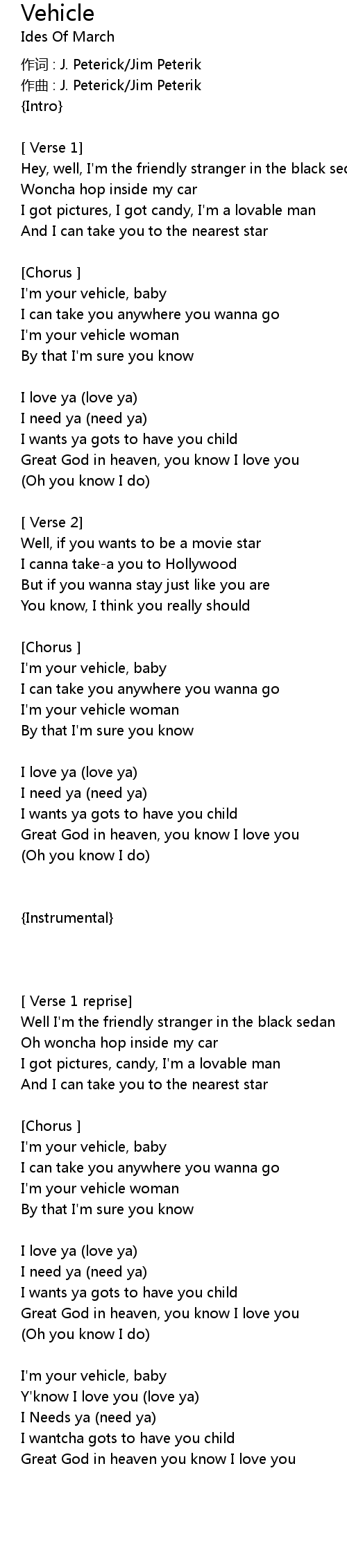 | I'm your vehicle, baby | |