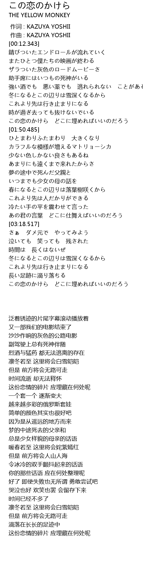 | [00:00.000] | 作词 : KAZUYA YOSHII |