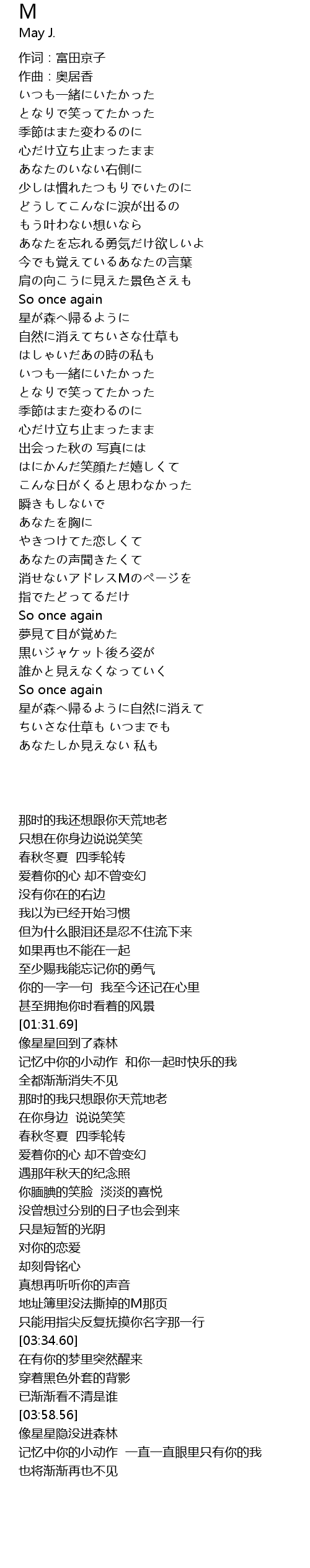 | [03:24.35] | 地址簿里没法撕掉的M那页 |