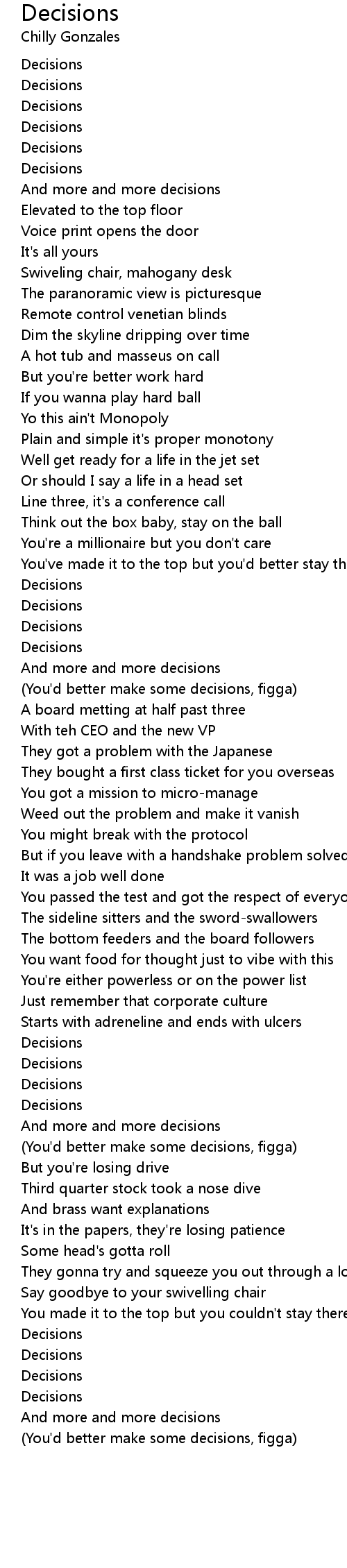 (You'd better make some decisions, figga) |