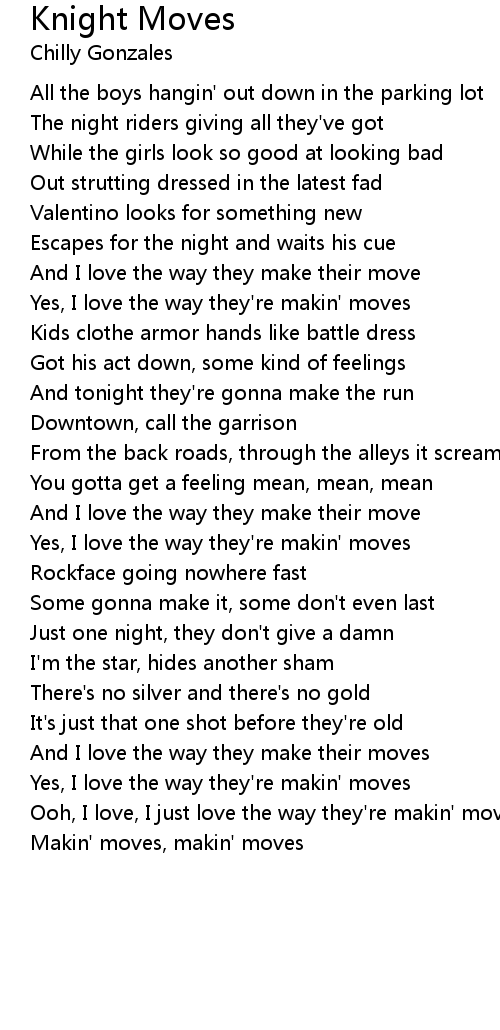 And I love the way they make their moves |