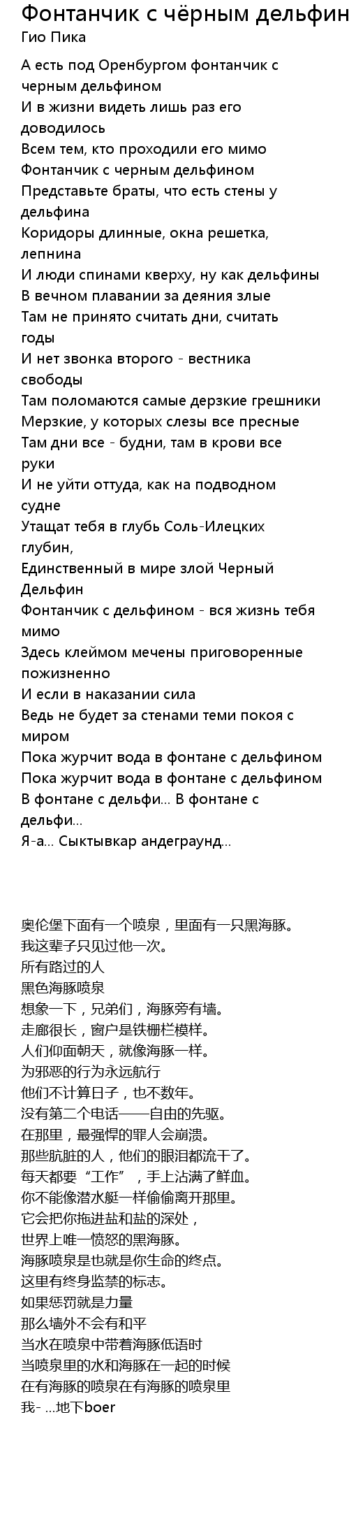 | 歌曲 | Фонтанчик с чёрным дельфином |