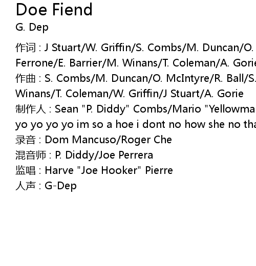 | 制作人 : Sean "P. Diddy" Combs/Mario "Yellowman" Winans | |