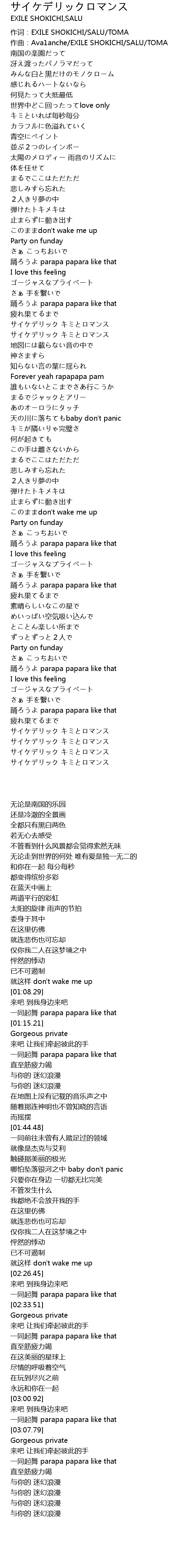 | [00:10.81] | 作词:EXILE SHOKICHI/SALU/TOMA |