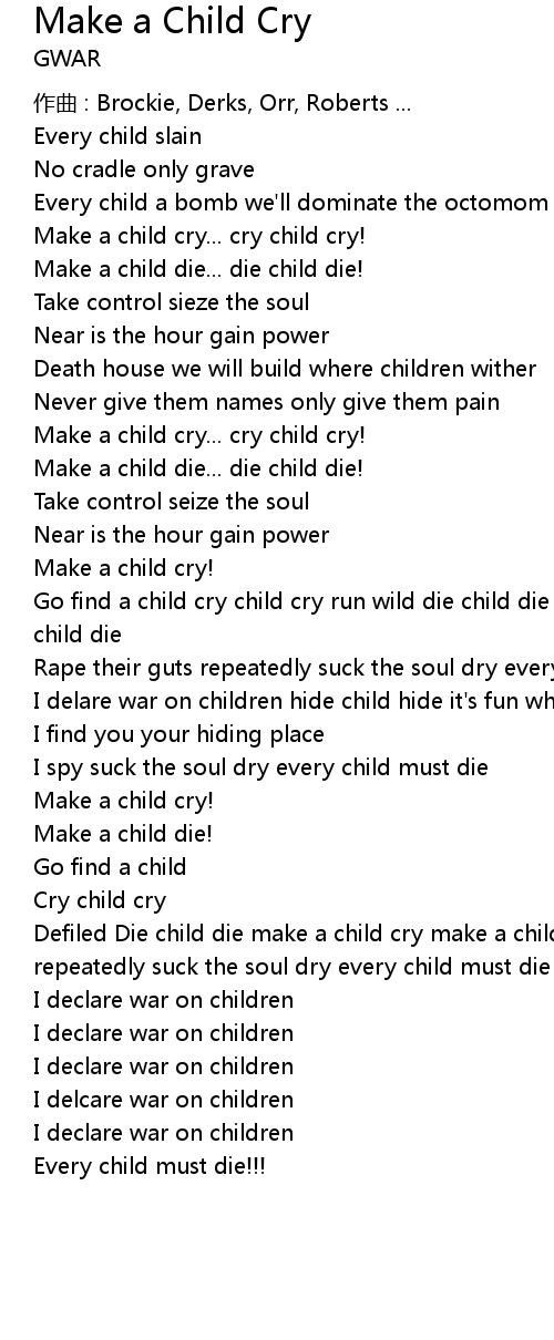| Go find a child cry child cry run wild die child die make a child cry make a child die | |