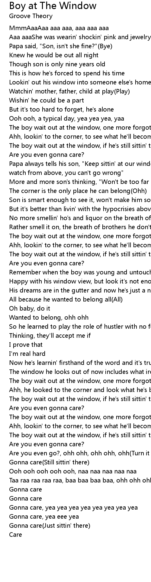 The boy wait out at the window, if he's still sittin' there(Still sittin' there) |
