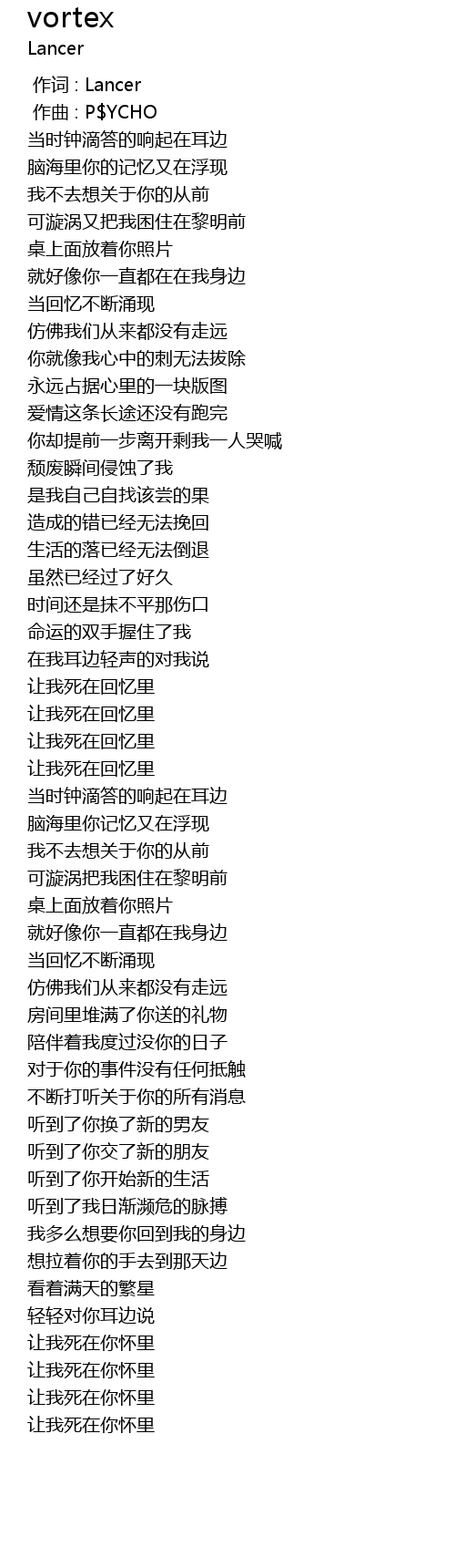 | [01:28.165] | 让我死在回忆里 |