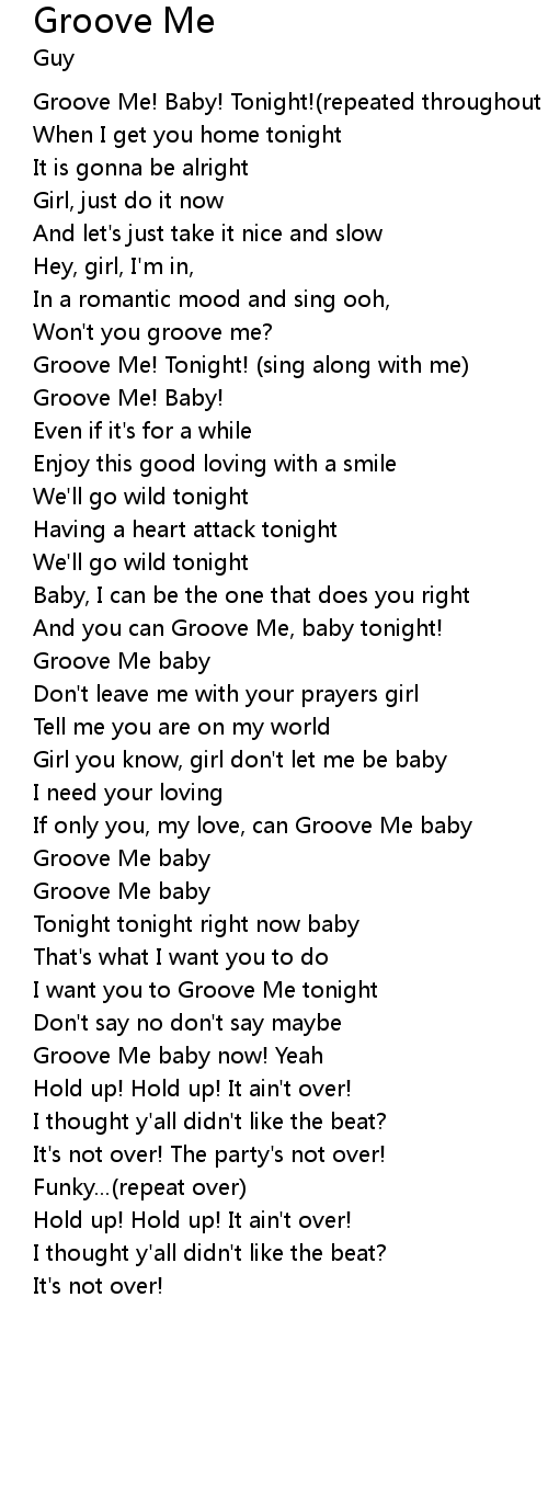Groove Me! Baby! Tonight!(repeated throughout the entire song) |