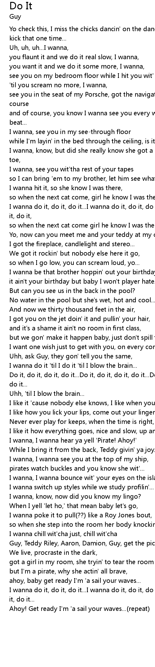 | I wanna do it, do it, do it...I wanna do it, do it, do it...I wanna do it, do it, do it, | |