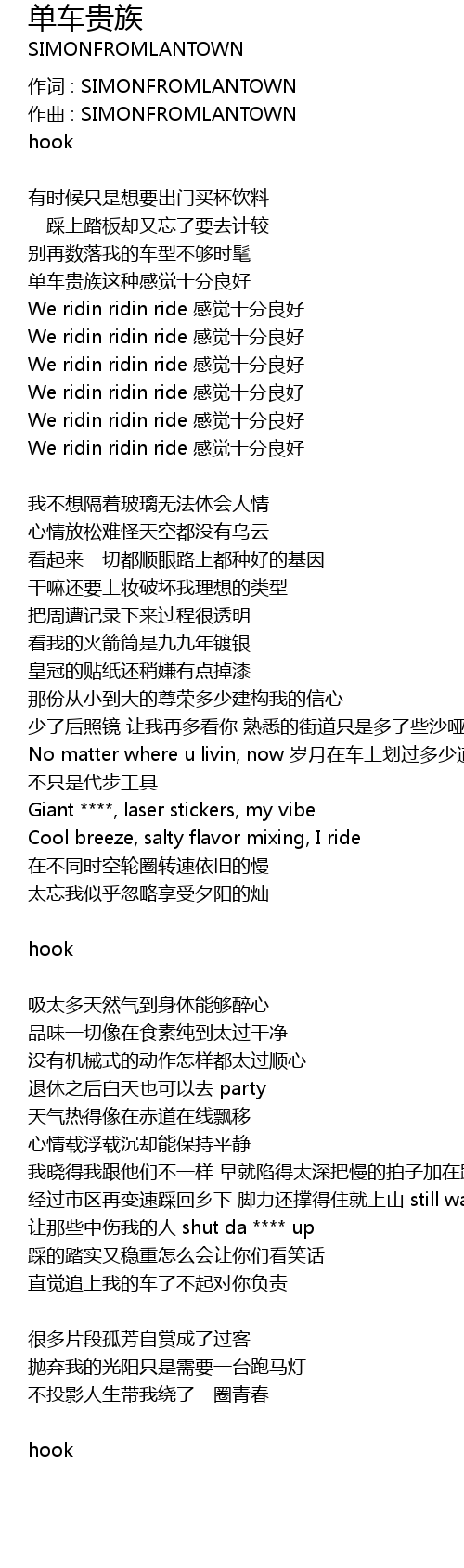 | 作词 : SIMONFROMLANTOWN | |