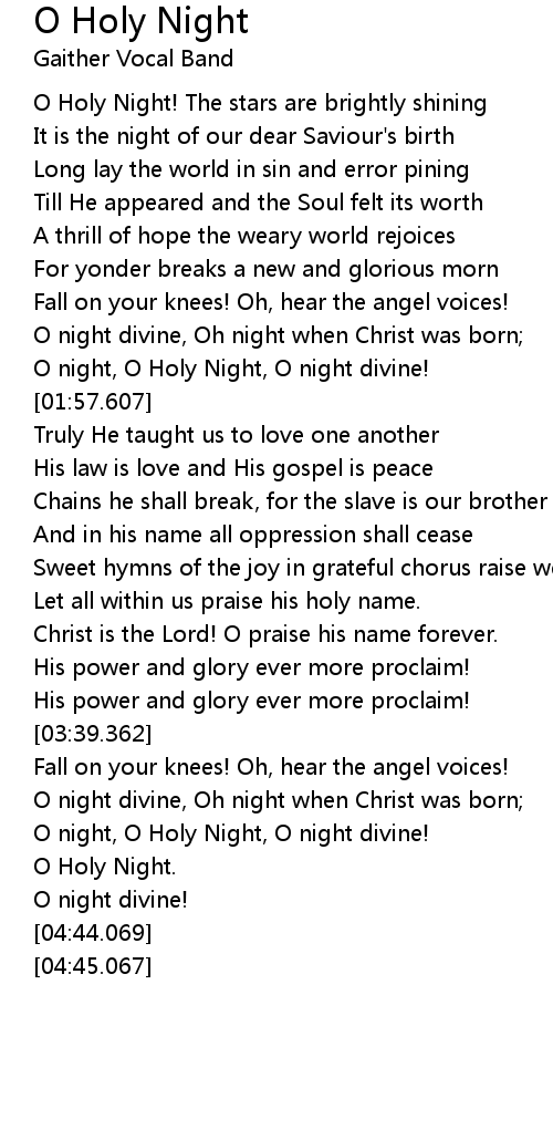 O night, O Holy Night, O night divine! |