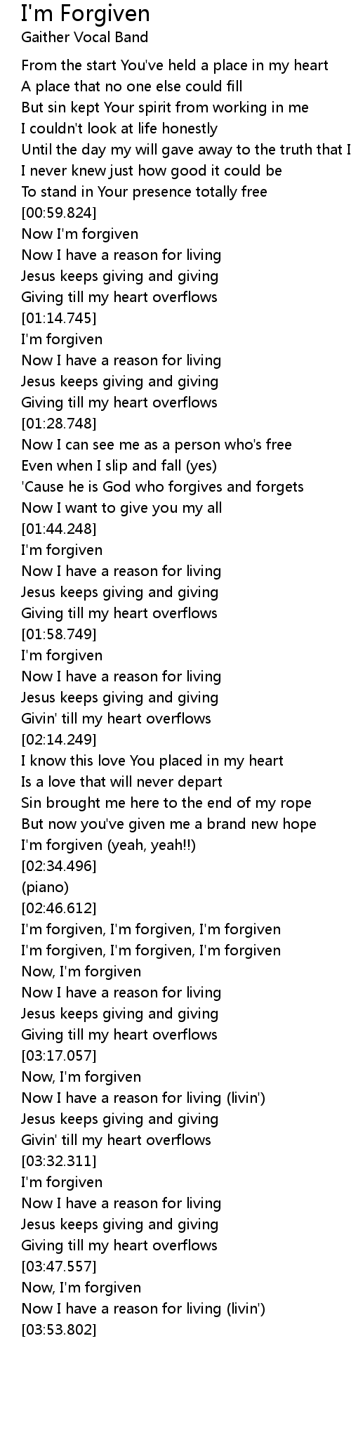 I'm forgiven, I'm forgiven, I'm forgiven |