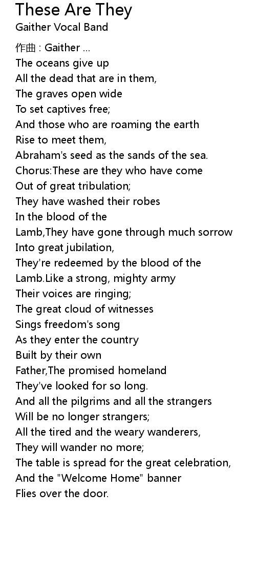 | Chorus:These are they who have come | |