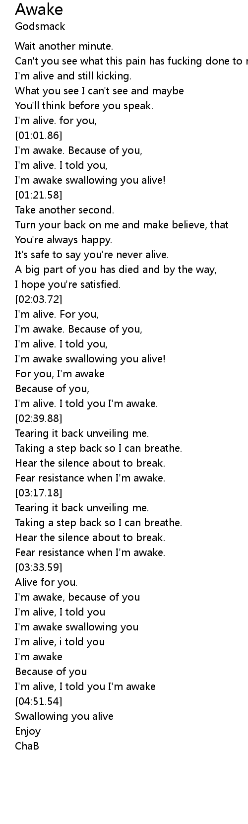 I'm alive, I told you I'm awake |