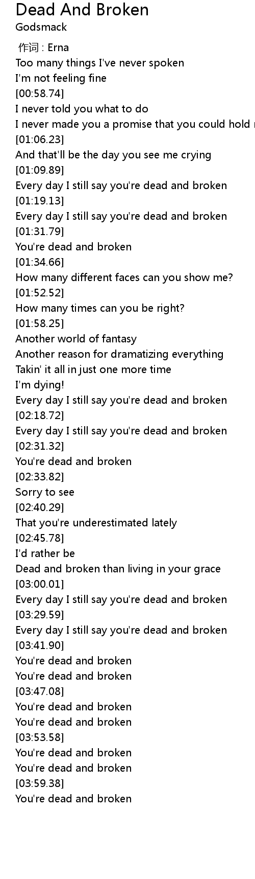 | [03:42.46] | You're dead and broken |