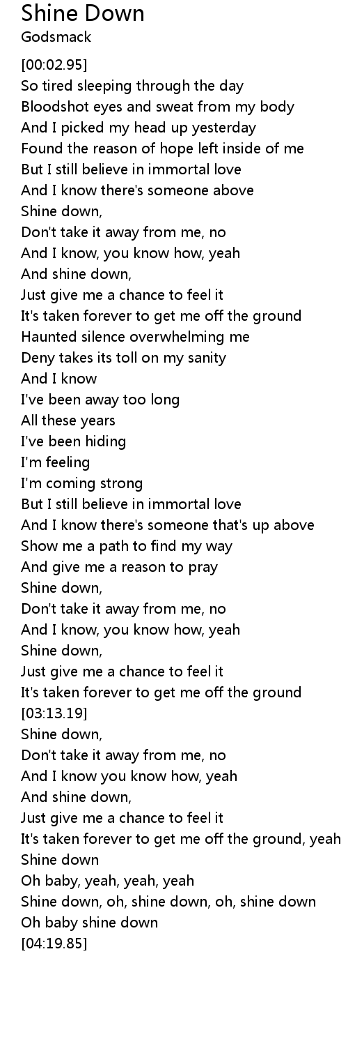 | [04:04.87] | Shine down, oh, shine down, oh, shine down |