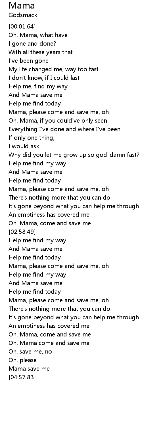 | [04:32.46] | Oh, Mama, come and save me |