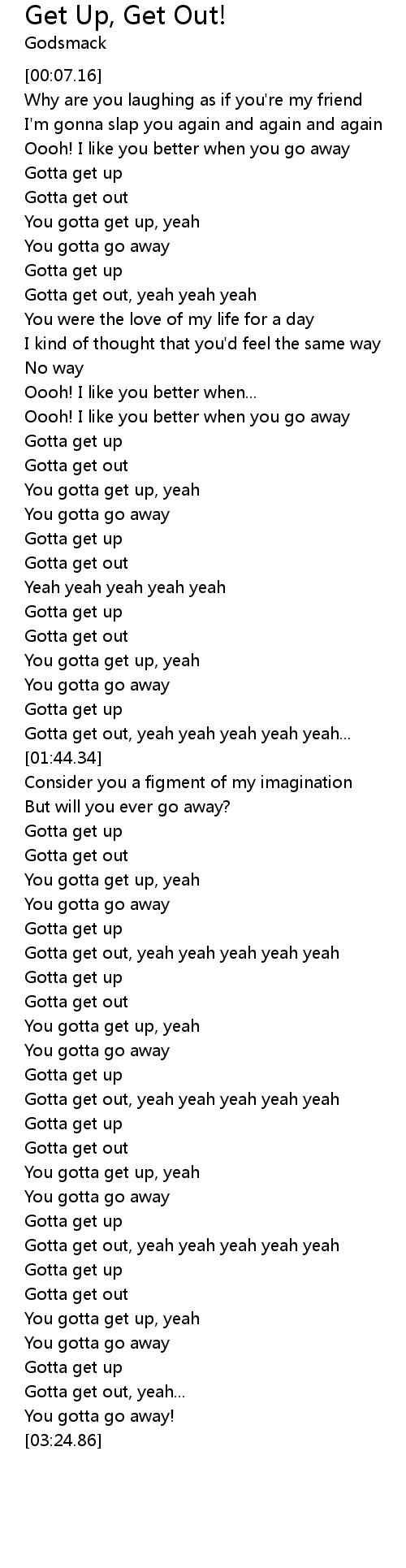 | [02:39.49] | Gotta get out, yeah yeah yeah yeah yeah |