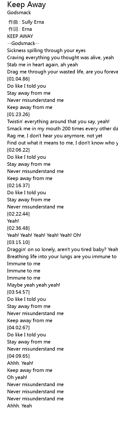 | [04:01.42] | Keep away from me |