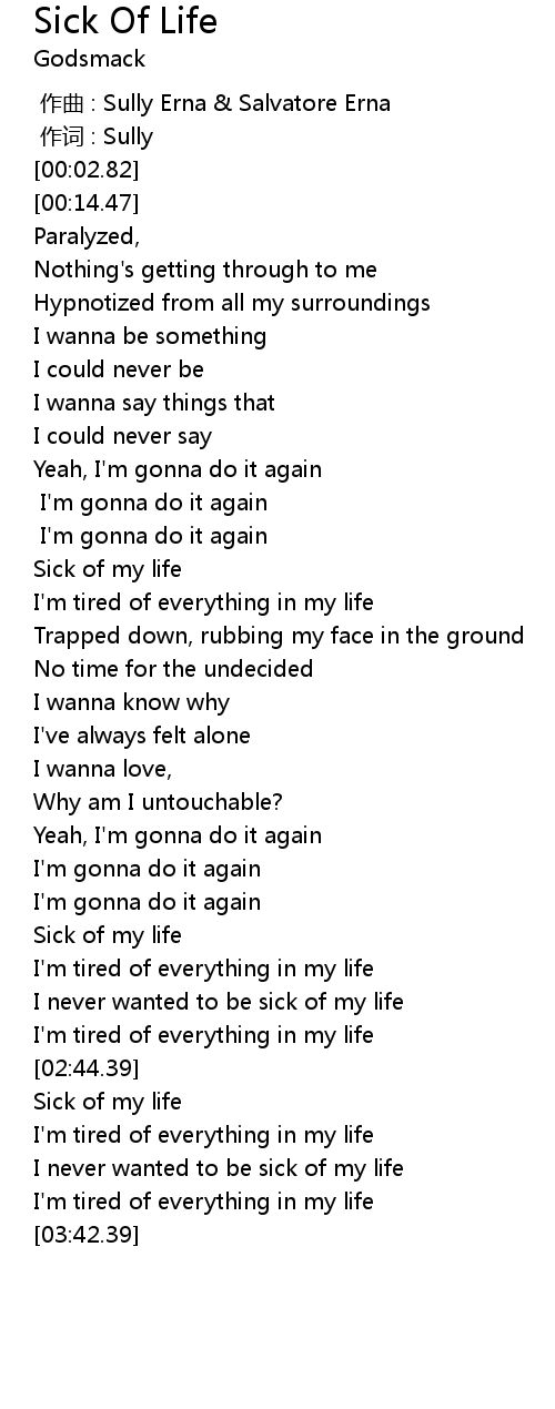 | [02:18.51] | Sick of my life |