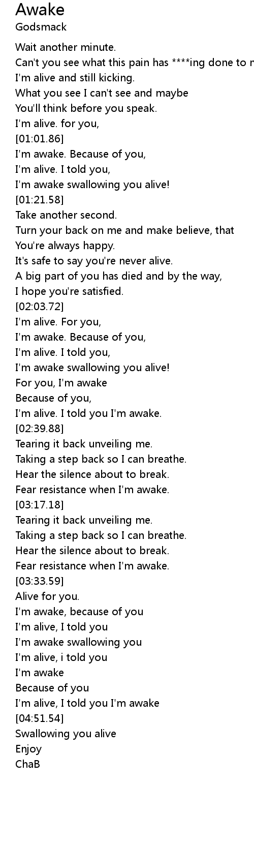 I'm alive, I told you I'm awake |