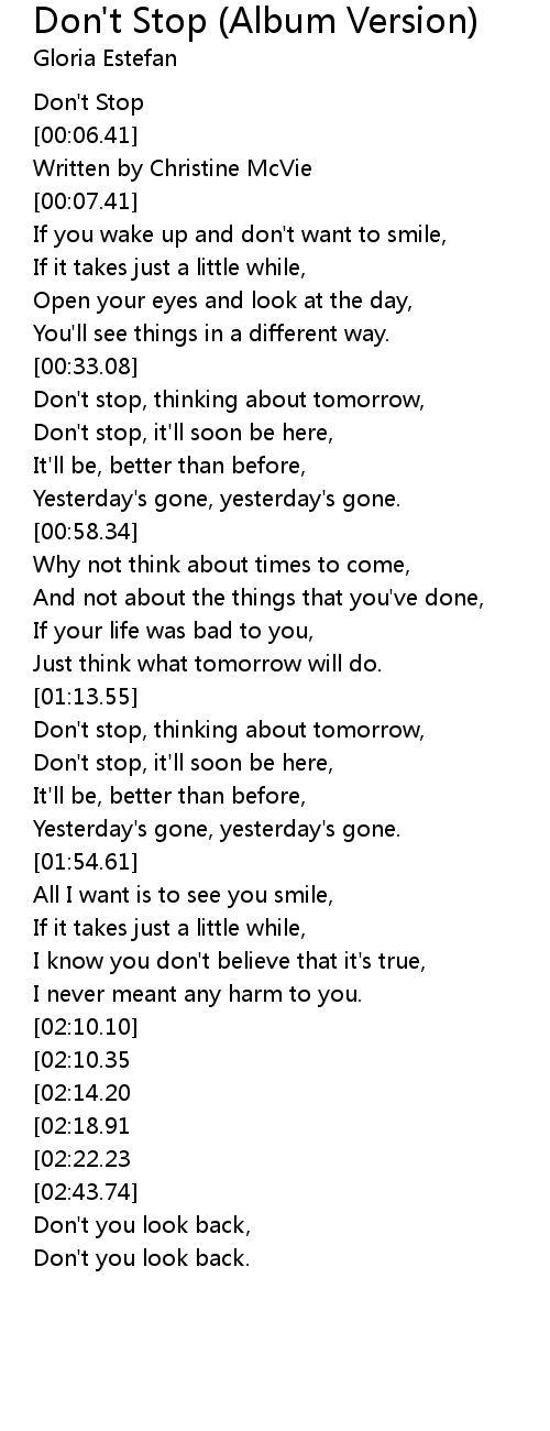 Don't stop, thinking about tomorrow, |