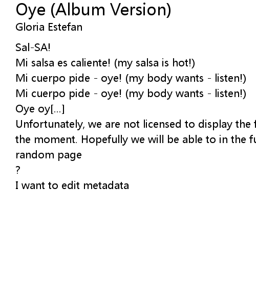 | Mi cuerpo pide - oye! (my body wants - listen!) | |