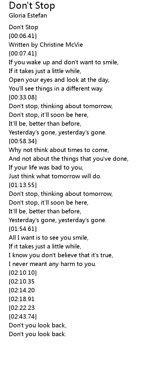 Don't stop, thinking about tomorrow, |