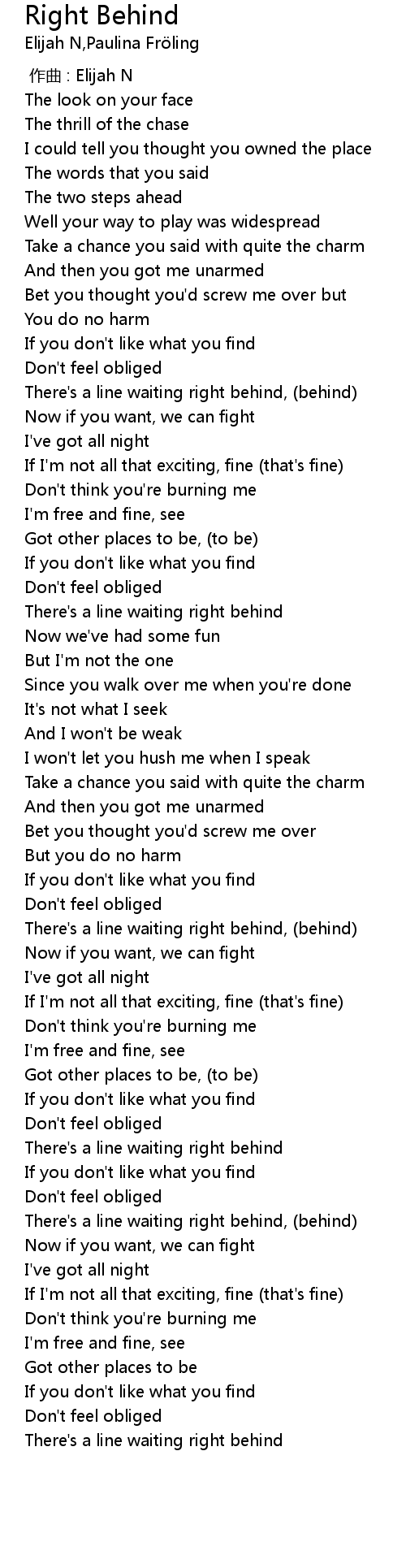 | 歌曲 | Right Behind |