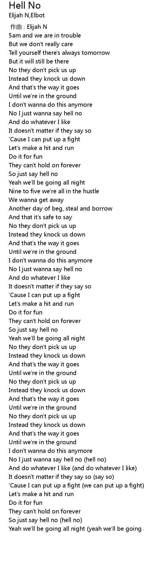 | [02:31.02] | No I just wanna say hell no (hell no) |