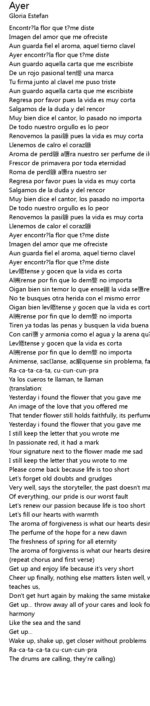 | Ayer encontr? la flor que t? me diste | |