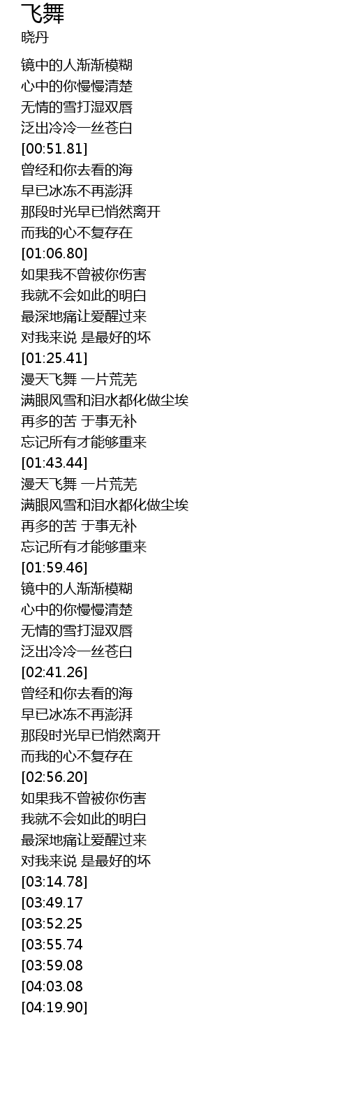 | [04:06.41][03:52.25][03:36.30][03:22.34] | 满眼风雪和眼水都化做尘埃 |