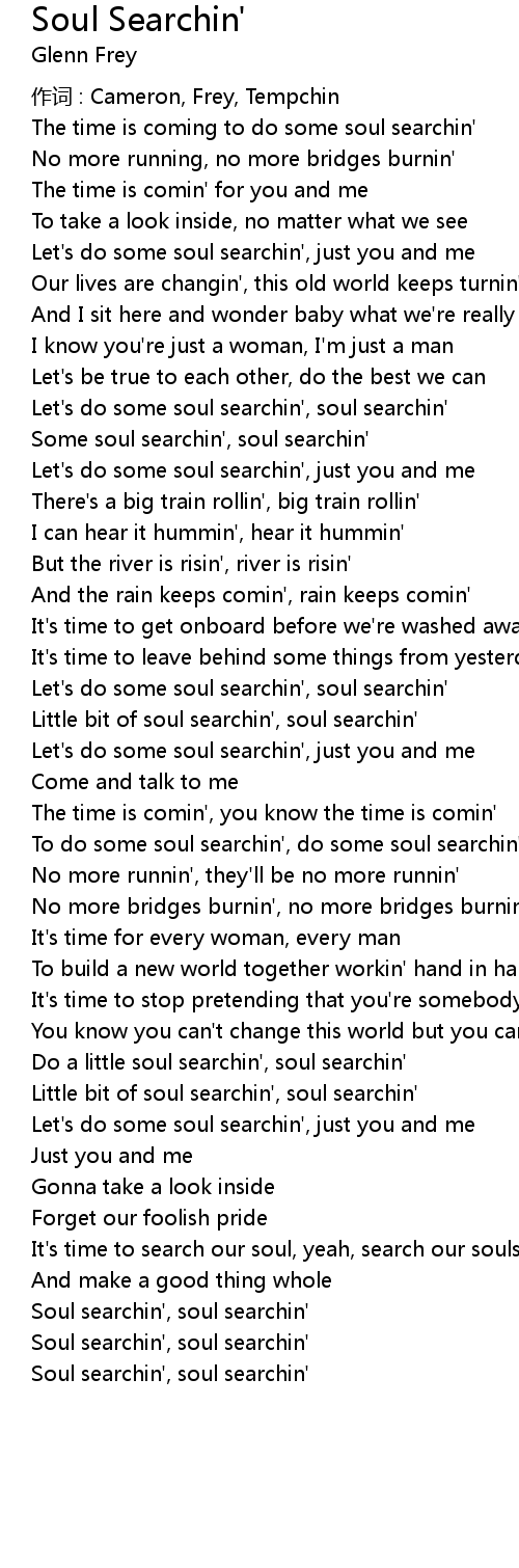 | Let's do some soul searchin', soul searchin' | |