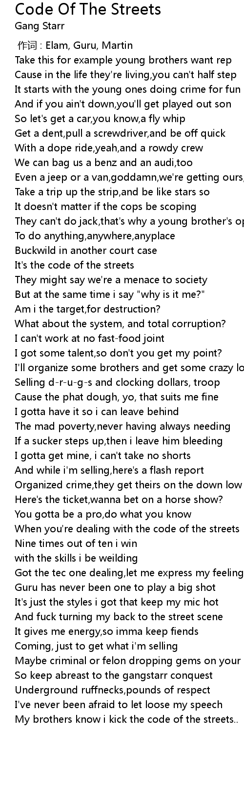 | [01:41.00] | When you' re dealing with the code of the streets |