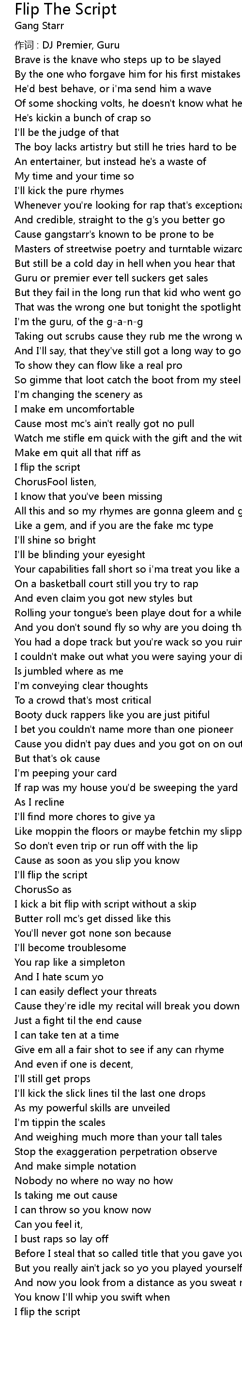 | 歌曲 | Flip The Script |
