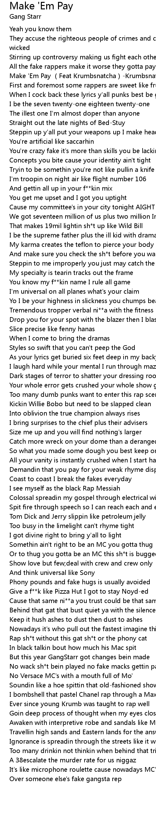 | [00:11.198] | Make ' Em Pay Feat Krumbsnatcha Krumbsnatcha |