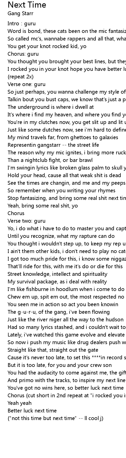 | ("not this time but next time" -- ll cool j) |