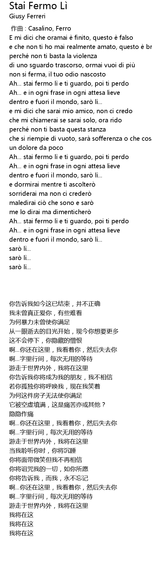 | 歌曲 | Stai Fermo Lì |