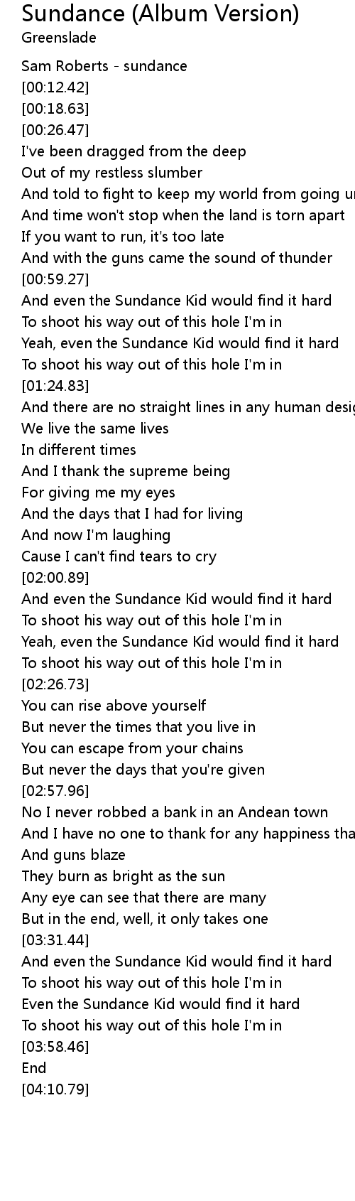 Sundance (Album Version) 歌词