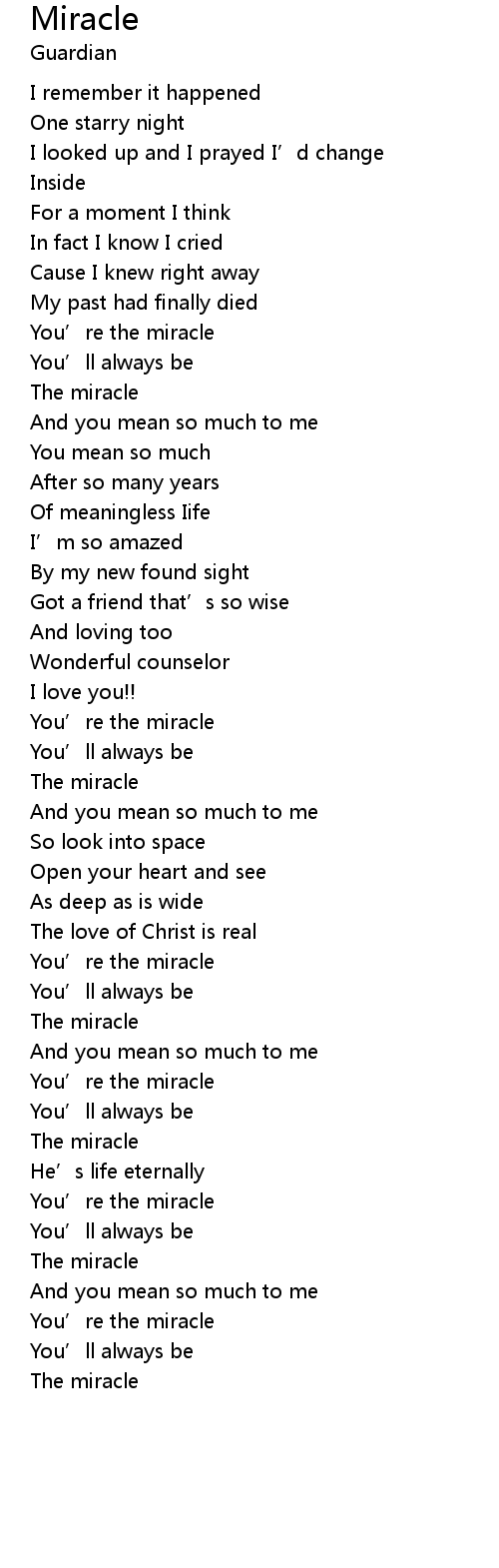| You' re the miracle | |