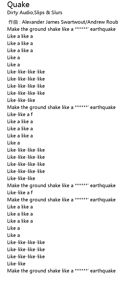 | [02:43.58] | Make the ground shake like a ******' earthquake |