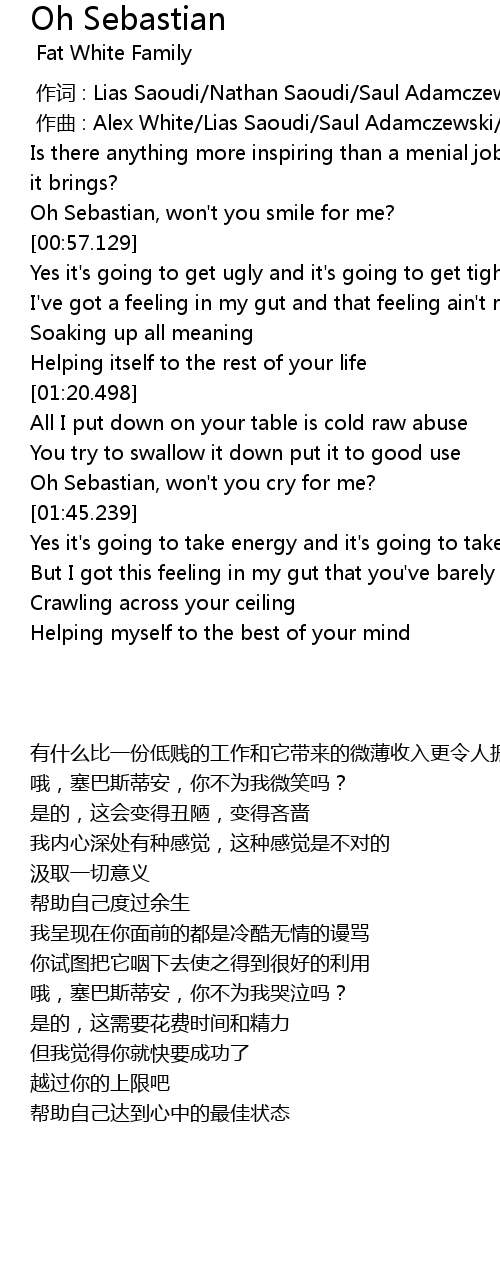 | [00:00.000] | zuo ci : Lias Saoudi Nathan Saoudi Saul Adamczewski Alex White |