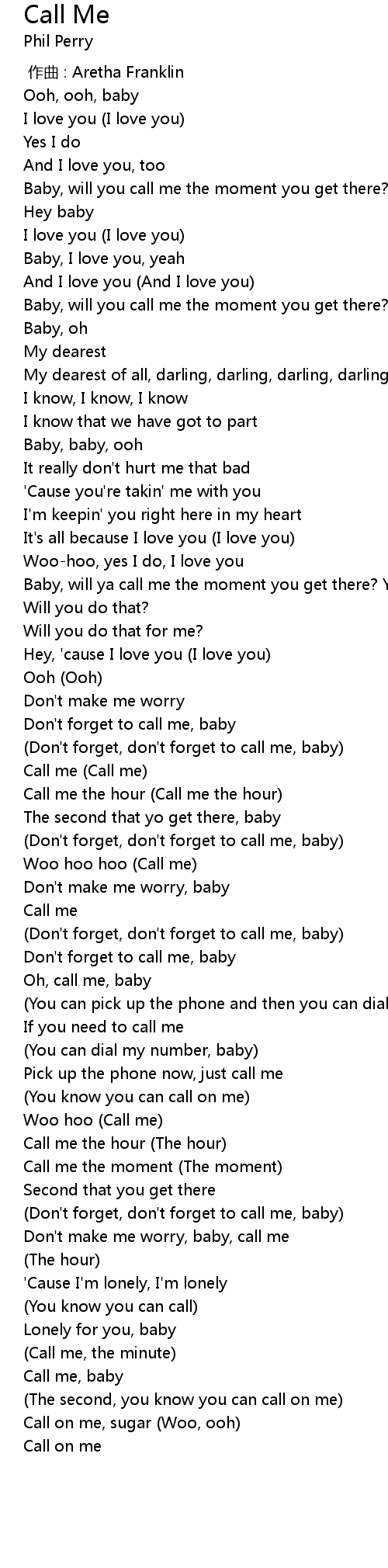 | [00:35.946] | Baby, will you call me the moment you get there? Yeah |