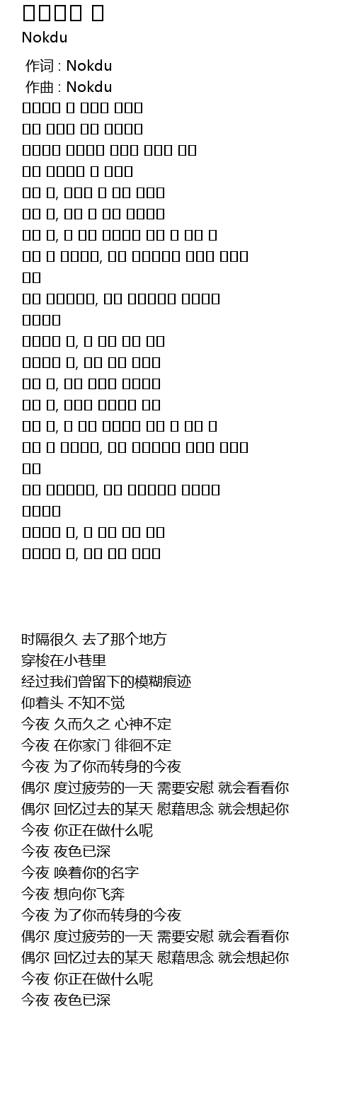 | [00:47.58] | 오늘 밤, 너의 집 앞을 서성이다 |