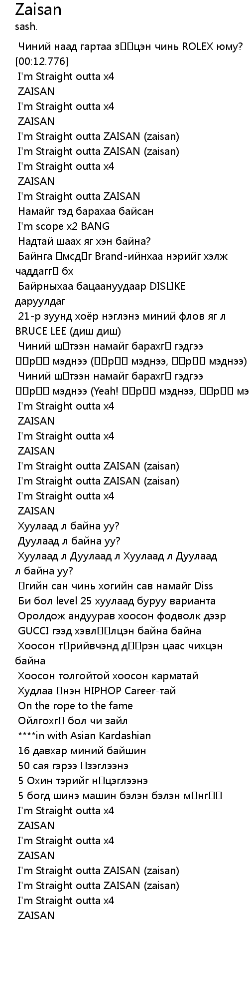 | [00:23.371] | I' m Straight outta ZAISAN zaisan |