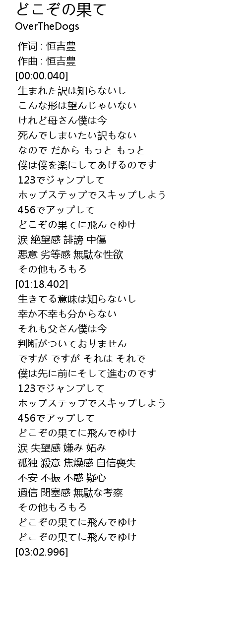 | [02:57.326] | どこぞの果てに飛んでゆけ |