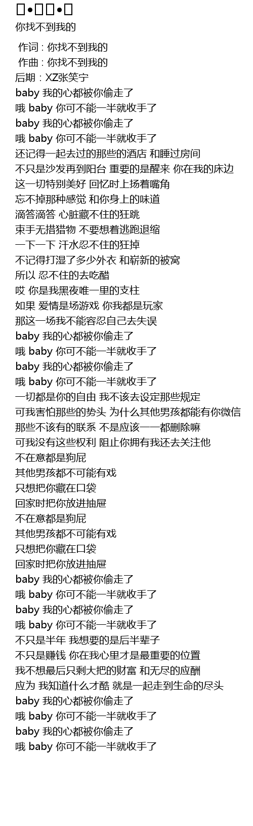 | [00:01.000] | 作曲 : 你找不到我的 |