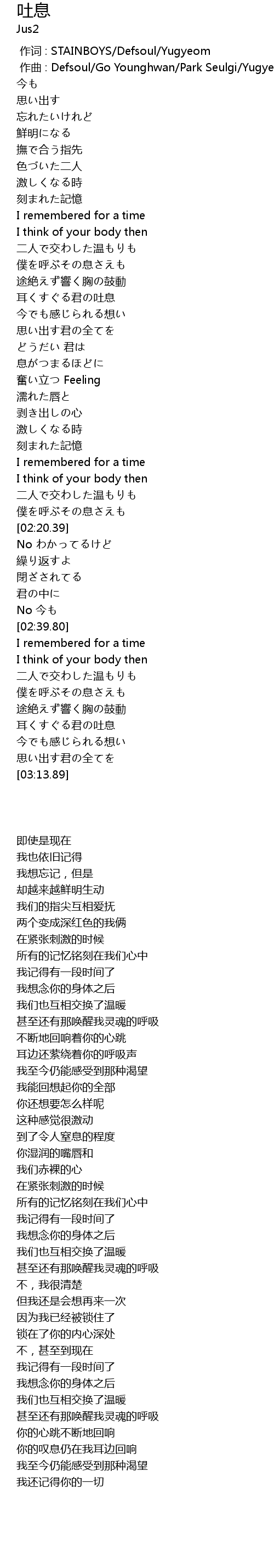 | [00:00.000] | zuò cí : STAINBOYS Defsoul Yugyeom |